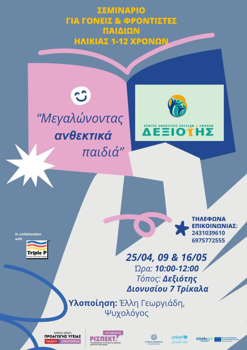 Τόπος: Κέντρο Ανάπτυξης Παιδιού και Εφήβου «Δεξιότης» Διονυσίου 7 Τρίκαλα